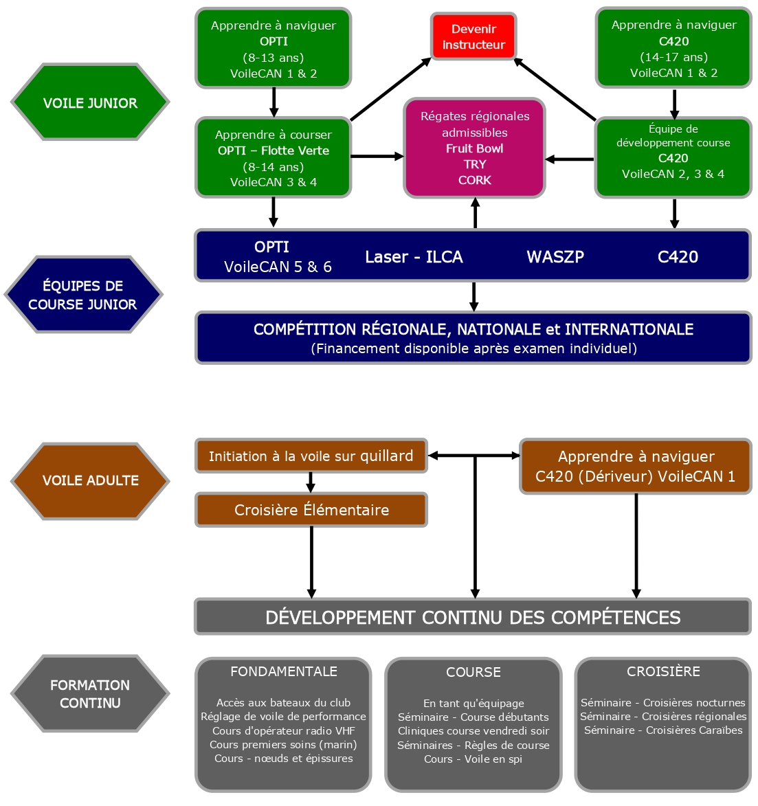 Notre parcours structuré ci-dessous montre comment chaque programme s’articule, ce qui vient après chaque niveau et comment votre enfant (ou vous-même) peut évoluer avec nous année après année.